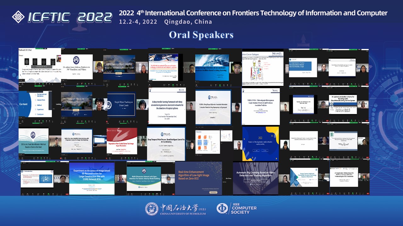2022年12月3日,2022年第四届IEEE信息与计算机前沿技术国际学术会议(ICFTIC 2022)成功举办。本次会议由中国石油大学(华东)主办,AEIC学术交流中心承办,IEEE Computer Society作技术支持。本次会议通过采取“线下+线上”“主场+分会场”形式进行,围绕"信息与计算机前沿技术”的最新研究领域,共同分享计算机领域的科研成果和前沿技术,探讨学术发展趋势。本次大会吸引来自国内外高校、科研院所、企业的资深专家、科研人才、青年学者共300余人参会,更有近1600人次通过艾思科蓝平台直播“云参会”,观看大会的实况。