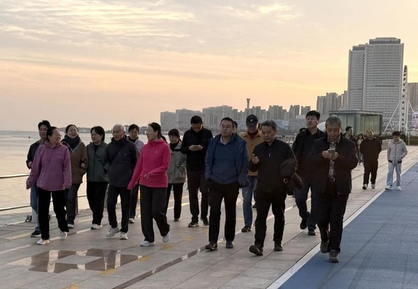 健步行路线沿唐岛湾滨海步行道展开,湛蓝的海水与远处的青山相映成趣,秋日盛景让人心旷神怡。行进过程中,教职工们精神抖擞,有的与相熟的同事并肩而行,畅谈教学科研中的心得与生活里的趣事;有的放慢脚步欣赏沿途景致,不时用手机记录下秋日美景;有的结伴快步前行,充分享受运动带来的活力。在欢声笑语中,本次秋季健步行活动顺利落下帷幕。