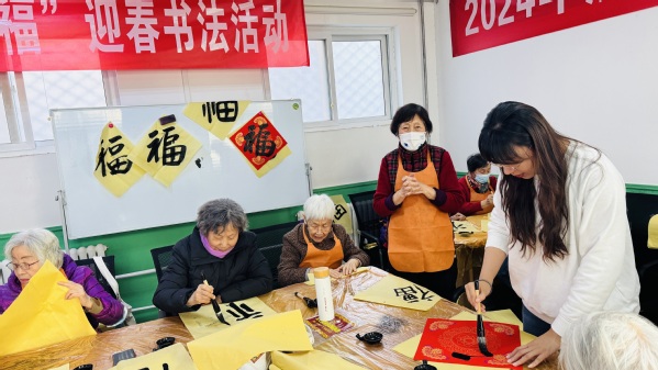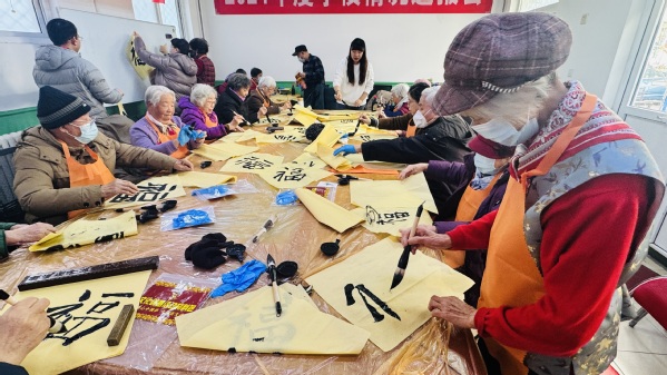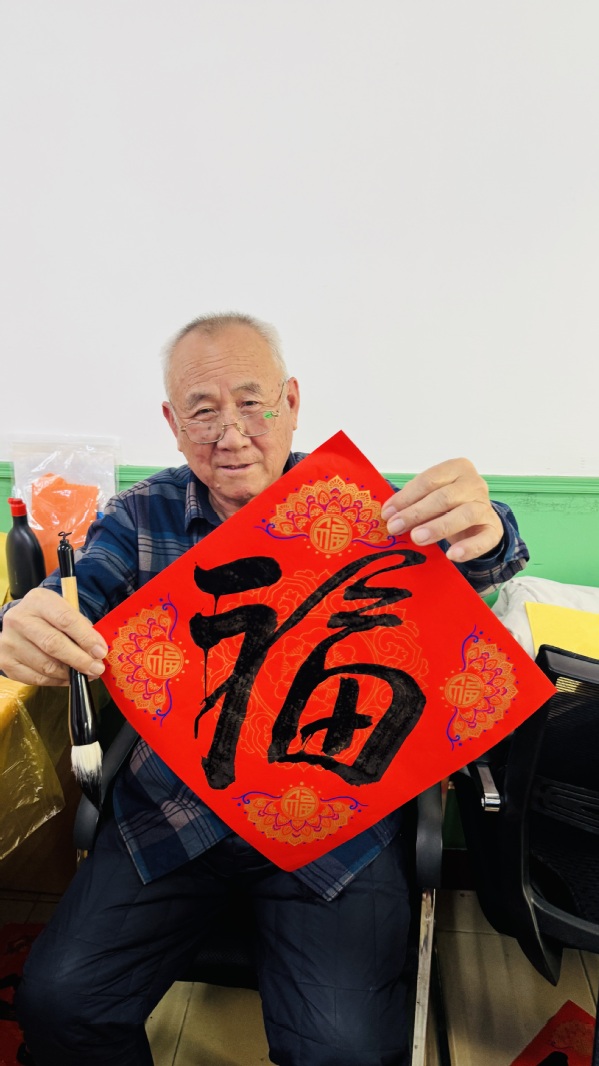 热闹非凡的活动现场,老同志汇聚一堂,挥毫泼墨,用饱满的激情练习着、书写着,笔锋或抑或扬,顿挫有力,一幅幅散发着清新墨香、寓意吉祥的“福”字在行云流水间新鲜出炉,浓浓的情意、真诚的祝福,洋溢在字里行间。
