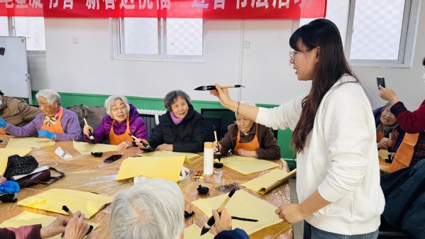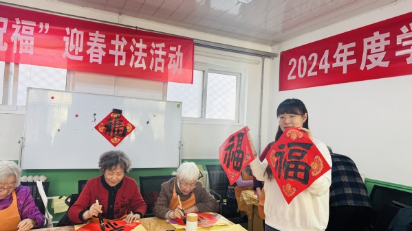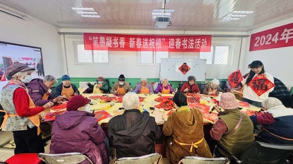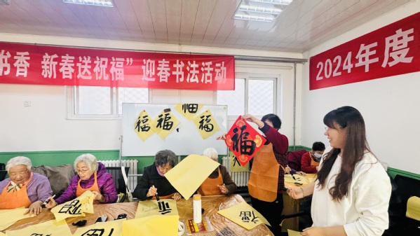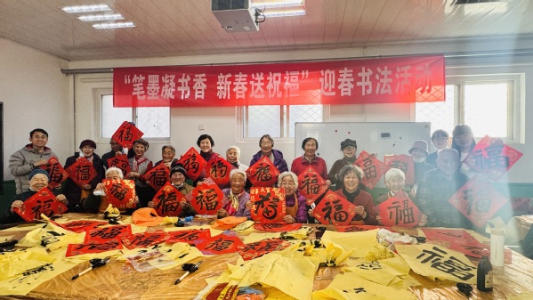 老同志们手捧一份份吉祥喜庆、墨宝飘香的祝福,脸上荡漾着幸福的喜悦,整个活动现场被热闹的气氛映衬得年味儿十足,老同志们深深感到学校和单位全体工作人员的真挚关怀和美好祝福。大家带着这份饱含深情的新春第一份祝福,开心的迎接新年的到来。