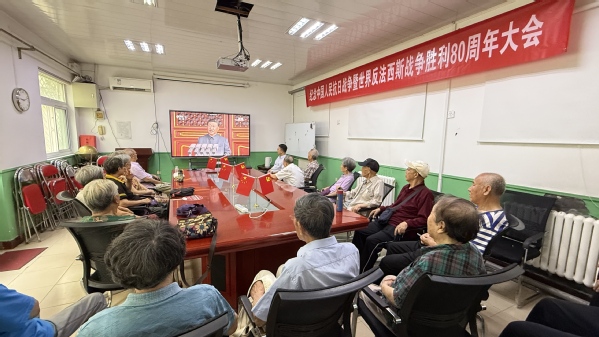 9月3日,纪念中国人民抗日战争暨世界反法西斯战争胜利80周年大会在北京天安门广场隆重举行。为加强思想政治引领,激发广大干部职工的爱国热情,北京离退休工作办公室组织全体工作人员、离退休党员群众集中观看大阅兵直播活动,共同见证祖国的强盛和荣光。