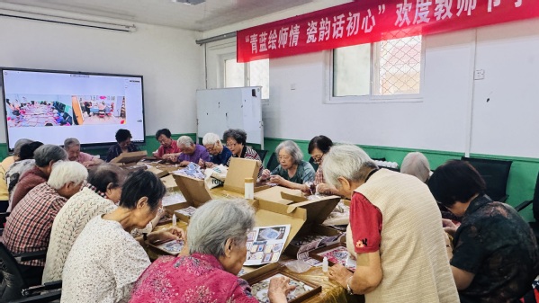 三尺讲堂,染白发苍苍,育天下桃李;寒来暑往,撒点点心血,教九州才子。在第41个教师节来临之际,北京离退休工作办公室精心组织银发园丁开展“青蓝绘师情 瓷韵话初心”瓷片贴画创作活动。数十位退休老教师齐聚一堂,巧手拼贴瓷片,将对教育事业的热爱与节日的喜悦融入指尖艺术,在老有所为、老有所乐中重温为人师者的幸福与荣光。