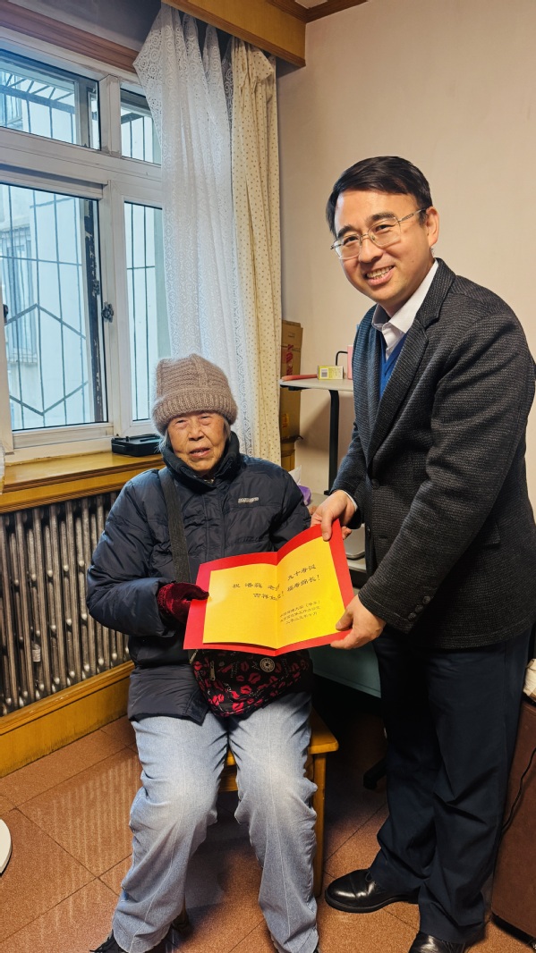 亚运村第二支部书记张玉萍老师一同参加慰问工作,为本支部的老同志送上诚挚的节日祝福。