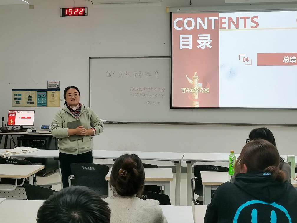 为进一步传承和弘扬爱国主义精神,回顾建国75周年来的辉煌发展历程,厚植党员同志的爱国情怀,10月25日,化学化工学院应化专业第一学生党支部与应化专业第二学生党支部在综合楼A401开展“国之当歌,青春挺膺”主题党日活动。此次活动由王延杰同志主持,参与本次活动人员有指导老师栾琳及应化专业学生党支部全体党员与预备党员。