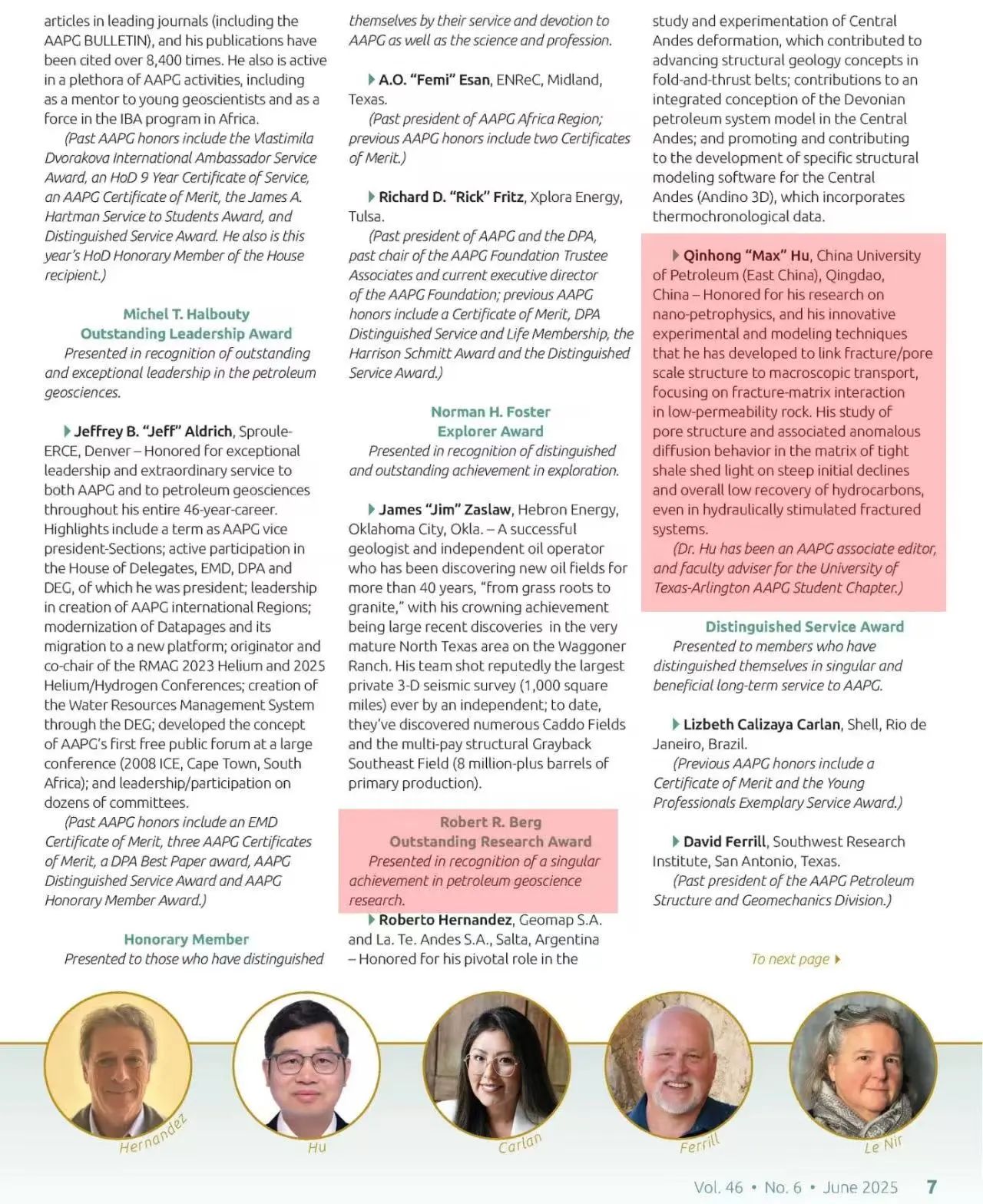 Recently, the periodical Explorer of the American Association of Petroleum Geologists (AAPG) released the award list of AAPG. Professor Hu Qinhong from the School of Geosciences was awarded the Robert R. Berg Outstanding Research Award in recognition of his outstanding contributions in the field of nano-petrophysics. Professor Hu Qinhong became the first Chinese scholar to receive this award.