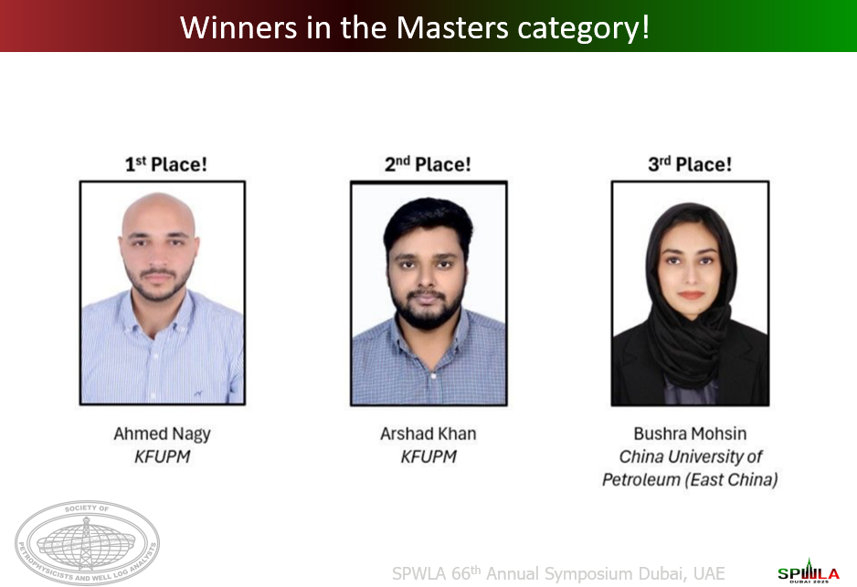 Recently, SPWLA (Society of Petrophysicists and Well Log Analysts) 66th Annual Symposium was held in Dubai, United Arab Emirates. Bushra Mohsin, graduate from School of Geosciences won the third place in the masters category of the International Student Paper Contest. Her paper title is A new approach to fracturing prediction in tight sandstone based on clustering and deep learning methods. This is the first SPWLA- ISPC Contest winner for graduate from China University of Petroleum (East China). Bushra Mohsin came to China in 2023 from Pakistan and studied under the supervision of associate professor Tang Mingming.