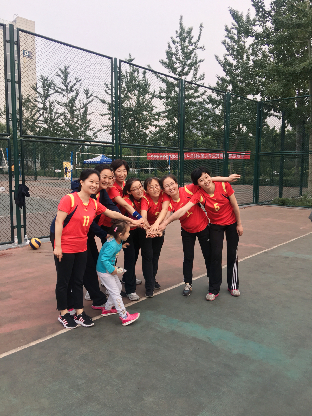 部分啦啦队和队员合影!学院党政领导一起给球队加油!前面还有两个可爱的小天使,妈妈在奋战,宝宝来加油!范宜仁老师也是高级球迷了!勘探系老职工徐怀民、焦翠华老师无意间也出现了,我肯定认为他们会把华东这么好的体育氛围带到石大北京!李理老师去年一声“打死他”今年还在回响!有队员说不曾想到赵永军老师也来加油,经了解没照合影是晚上有课,比赛结束已7点了!任怀强老师加完油估计站累了,有很多老师要赶回家的路,有很多同学要赶着去食堂吃饭,没照合影先离开了!感谢您们!大家辛苦了!声势浩大的啦啦队彰显了地院团结一致拿下比赛的决心和信心,也会给对手增加无影的压力。