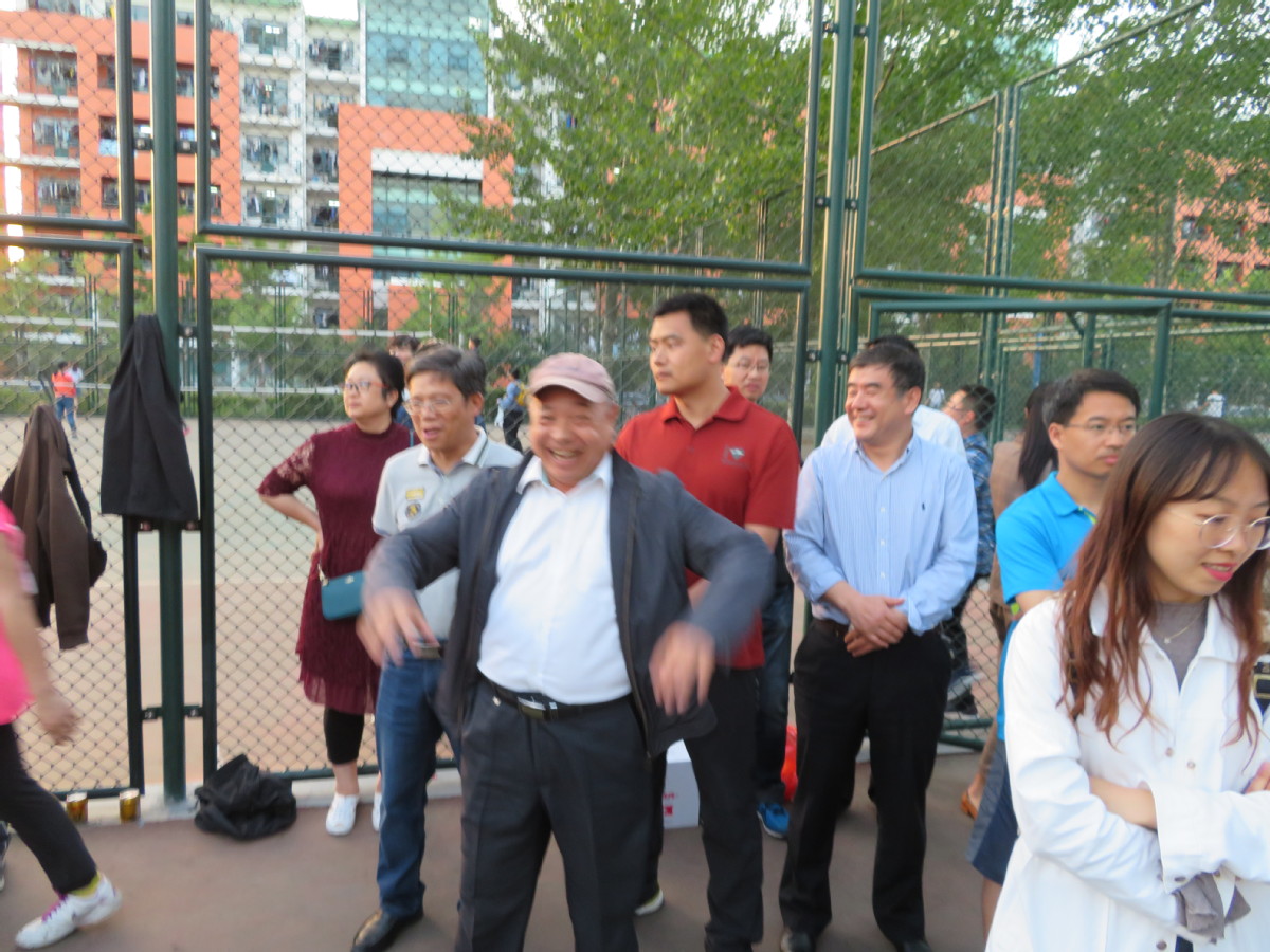 远远站着的是石工的赵书记,组织部万部长也去了,不好意思镜头对着他,理学院郭院长、罗主席,信控的马主席既是观众,也应该关注着双方的比分......