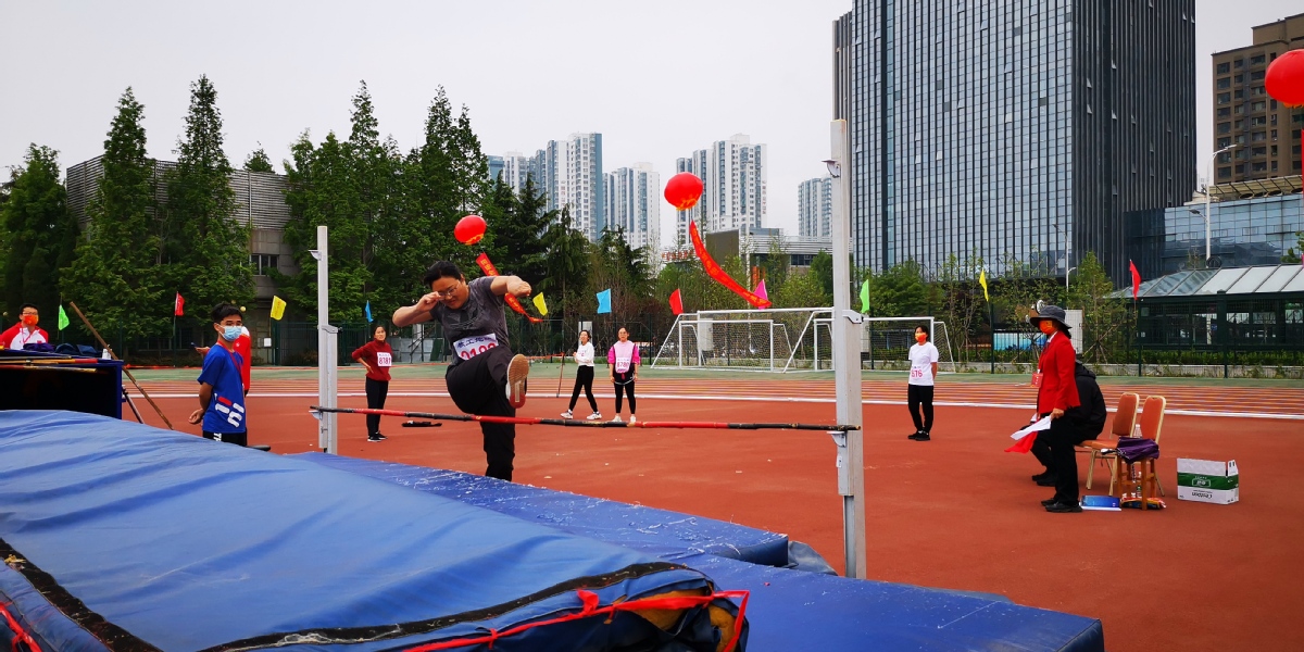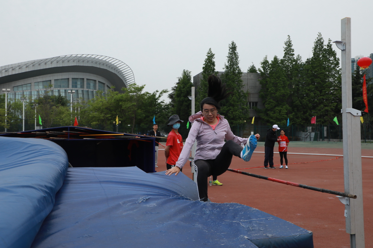 郭雪娇老师在跳高,腰带伤,第二,不然还是第一!