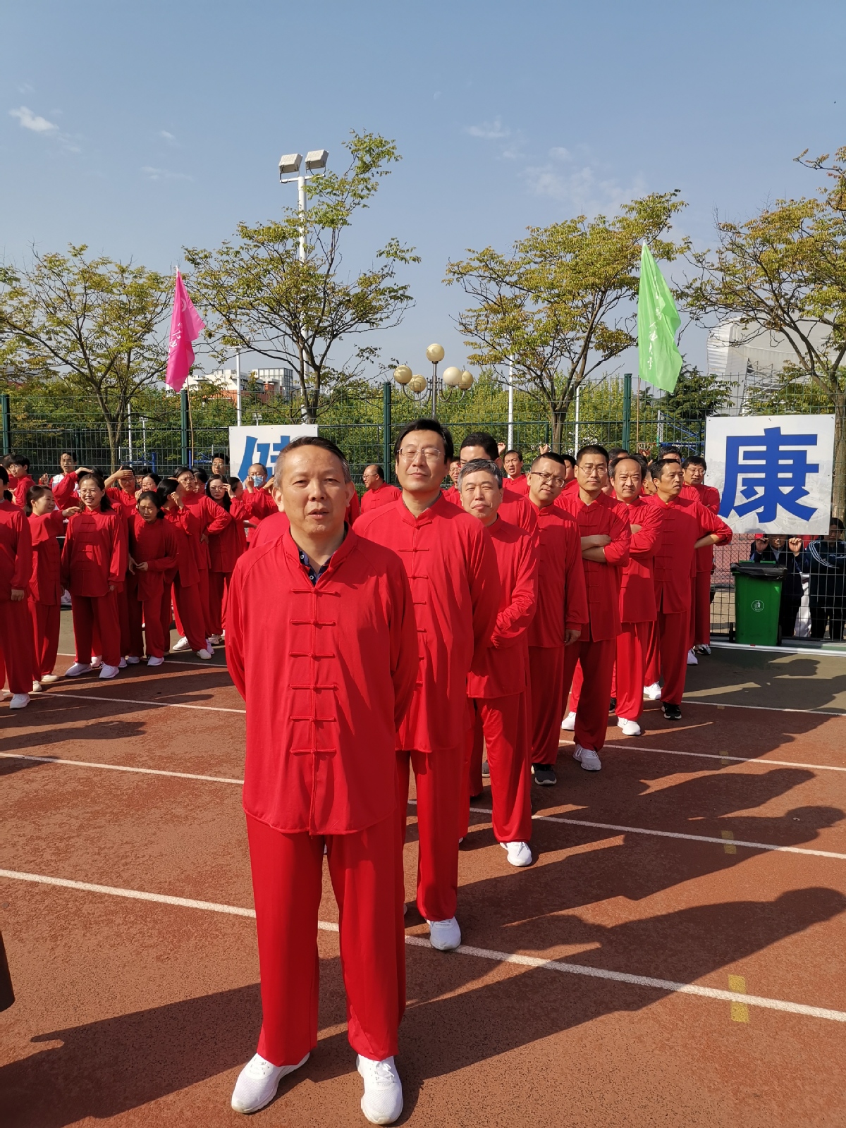 今年参加太极拳比赛学院上场人员正好46人。我们合影背后两个字很好!