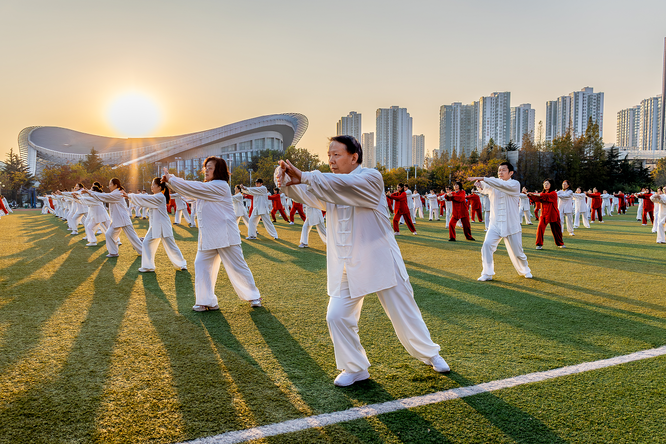 全校教职工太极拳汇演拉开了“冬季百日健身活动”的序幕,700余名教职工身穿统一的太极服,动作刚柔并济,拳法流畅自如,在缓慢而有力的招式中,充分展示了太极拳的魅力和风采。理学院、机电工程学院、马克思主义学院、石大山能新能源学院、教育发展中心、校机关、图书馆、地球科学与技术学院、石油工程学院、外国语学院10个代表队凭借出色的表现荣获优胜奖。
