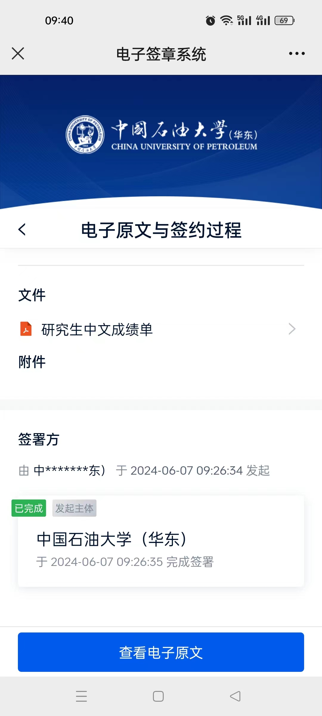 中国石油大学(华东)研究生电子签名文档上线啦!