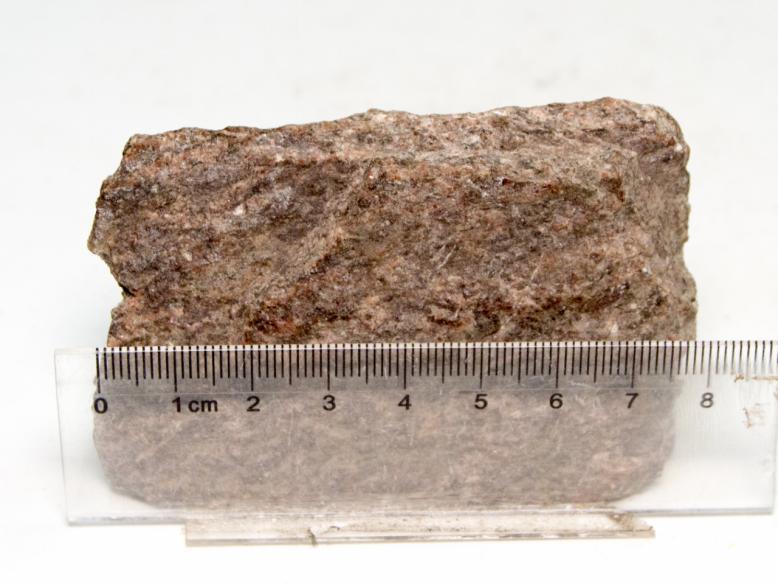 肉红色,糜棱结构,略具定向构造,主要矿物为长石,粒径约0.2mm,石英,它形粒状,粒径约0.1mm。 |