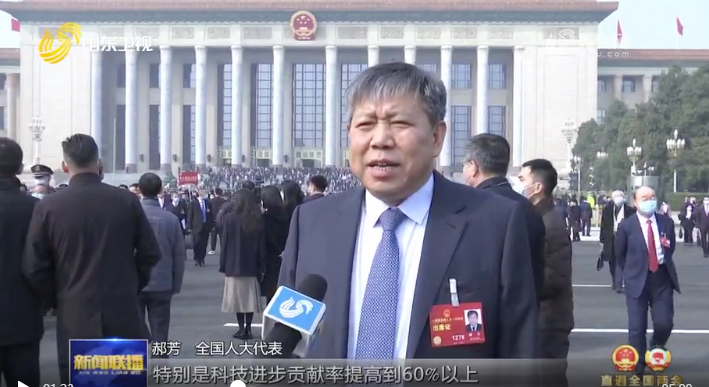 3月5日,第十四届全国人民代表大会第一次会议在北京人民大会堂开幕,国务院总理李克强作政府工作报告。开幕会后,全国人大代表郝芳在接受山东电视台采访时表示:“作为一名科教工作者,我印象最深、最感到振奋的,是创新驱动发展战略的实施和成效。五年来,基础研究投入经费增加一倍,研发经费投入从2.1%增加到2.5%以上,特别是科技进步贡献率提高到60%以上,这对每一个科技工作者都是极大的鼓舞。高校承担着育人和科技创新的双重使命。要把大学办好,为科技创新、为创新驱动发展作出应有贡献。”