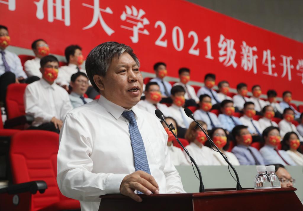 今天是一个值得庆祝的日子,8000多名考生以优异的成绩考入我校,这也是石油大学建校68年来招生最多的一年。8000多名新生的加入,使美丽的校园增添了新的活力。首先,我代表全校师生员工,向全体新同学们表示衷心的祝贺和热烈的欢迎,向精心培育你们的老师和父母表示崇高的敬意!