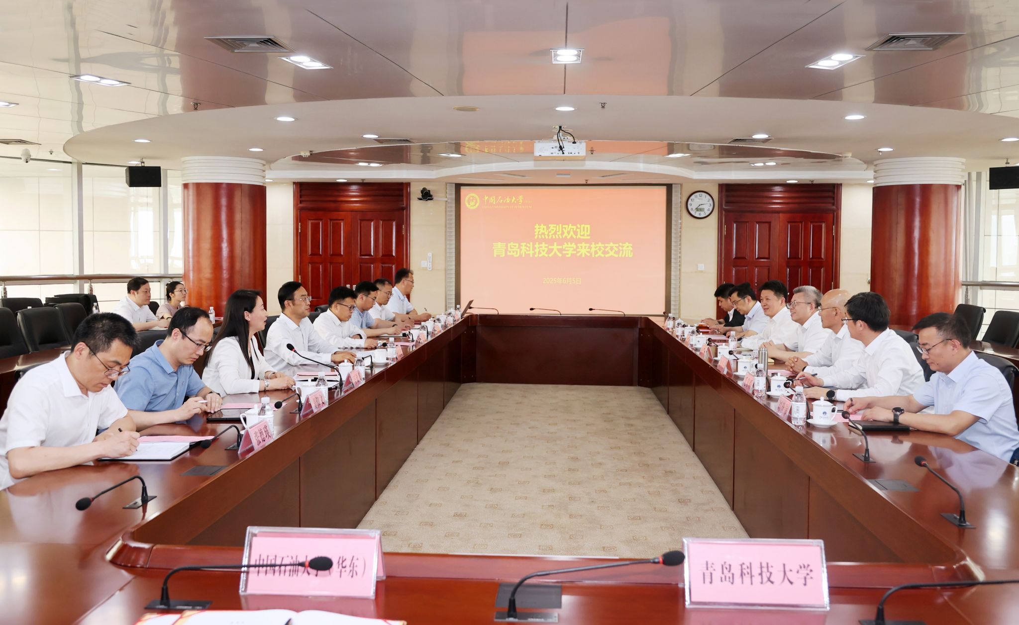 杨天梅对中国石油大学建设发展取得的成就表示祝贺,感谢石大长期以来对青岛科技大学的支持和帮助。他介绍青岛科技大学办学情况,希望双方综合优势资源,共同对接国家战略需求和行业卡脖子难题,聚焦化工、材料、能源等学科前沿,在联合申报项目、科技成果转化、平台建设、人才培养、干部挂职、教师访学等方面开展深入合作,共同为服务国家战略和山东化工强省建设贡献力量。