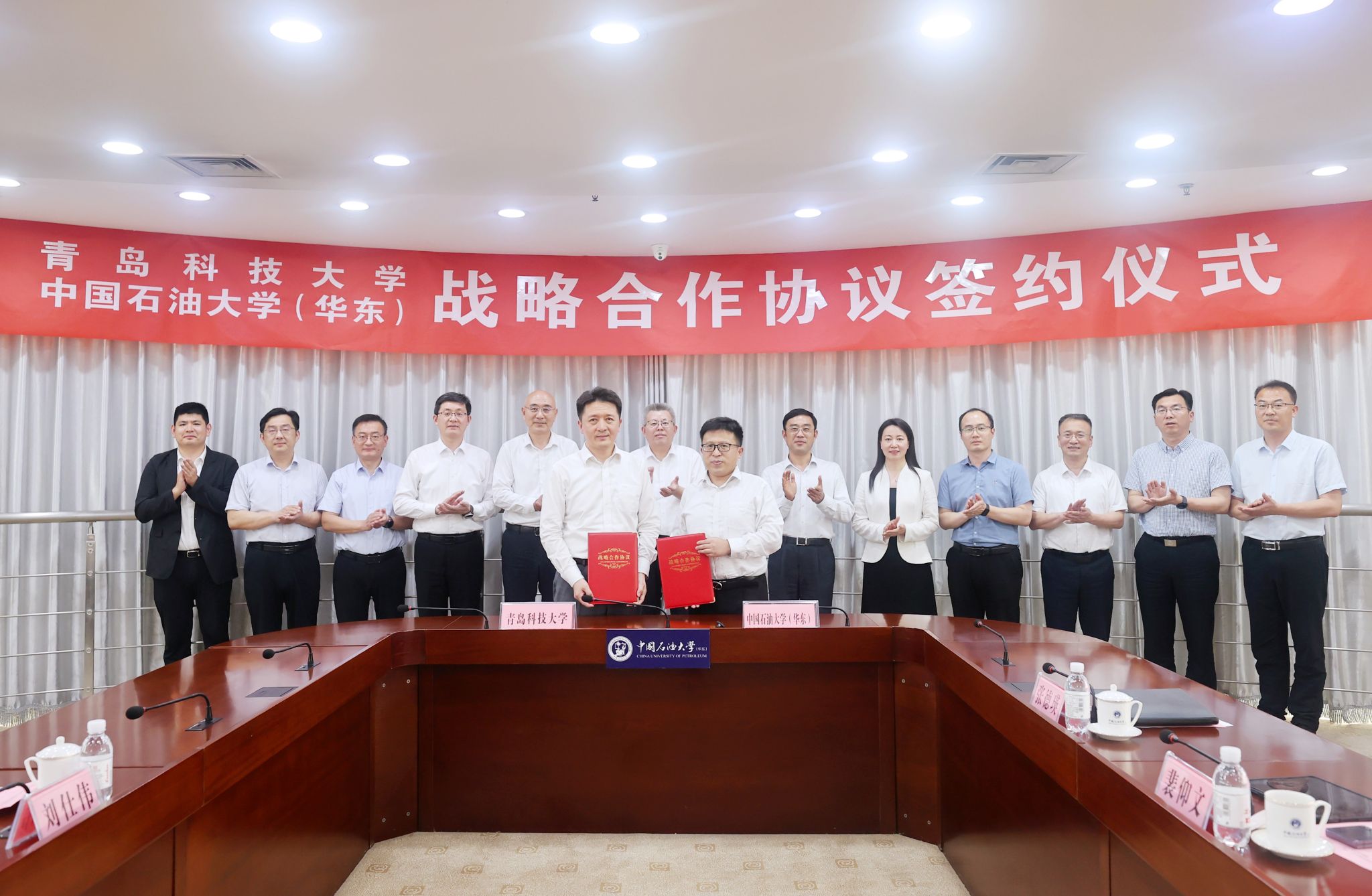 【本站讯】6月5日,青岛科技大学党委书记杨天梅、校长陈克正、副校长吴明铂一行来校访问,党委书记吴强明、校长郝芳院士、副校长周鹏、校长助理王效美会见来宾并座谈交流,吴明铂、周鹏代表双方签署战略合作协议。