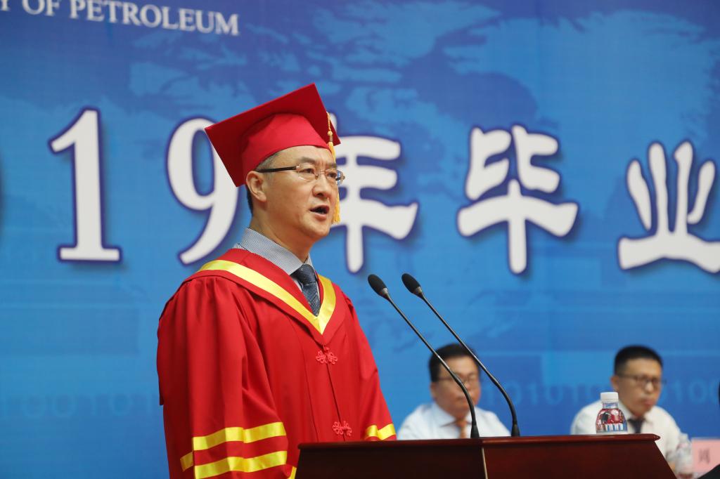 中国科学院院士、校长郝芳发表题为《做经世致用的石大人》的讲话,向圆满完成学业的毕业生表示热烈的祝贺,向辛勤培育毕业生的家长和老师表示崇高的敬意。他用“喜悦”“不舍”“遗憾”“感谢”四个词来表达自己的心情,并列举了大量石大人成熟成长、成才成长的事迹,勉励全体毕业生传承石大精神,做经世致用的石大人。