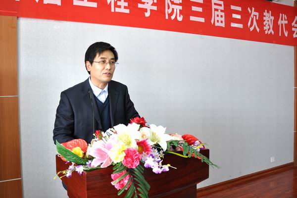 本次教代会的口号是“共建和谐校园,同谱学院新篇”。张卫东致开幕词。他在致辞中指出,三届教代会成立以来,学院发展势头喜人,成绩鼓舞人心,形象有口皆碑。广大教职工在学院发展中勇挑重担,党政配合默契、班子团结协作,教授委员会和教代会参与学院民主管理,重视思想文化建设,实现和维护教职工利益等一系列经验做法值得发扬光大。他希望每位代表充分行使手中的权利,从学院大局出发,从全院教职工的根本利益出发,发挥民主管理、民主监督的作用,为学院发展做出积极贡献。
