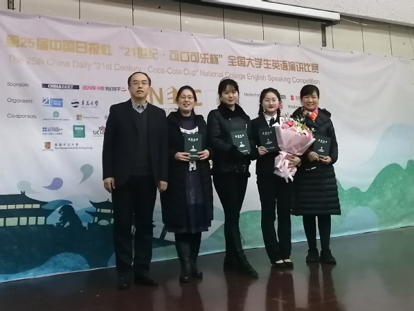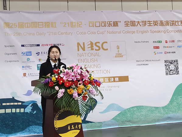 12月29日,第25届中国日报社“21世纪•可口可乐杯” 全国大学生英语演讲比赛山东省决赛落下帷幕,文学院2017级英语专业学生李盈英获得决赛特等奖,将代表山东省高校大学生参加明年举办的第25届中国日报社“21世纪•可口可乐杯”全国大学生英语演讲比赛全国半决赛。2017级国际经济与贸易(英双)专业学生郭卉铃获得三等奖。文学院教师徐小雁和马红艳获“优秀指导教师”称号。