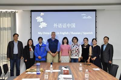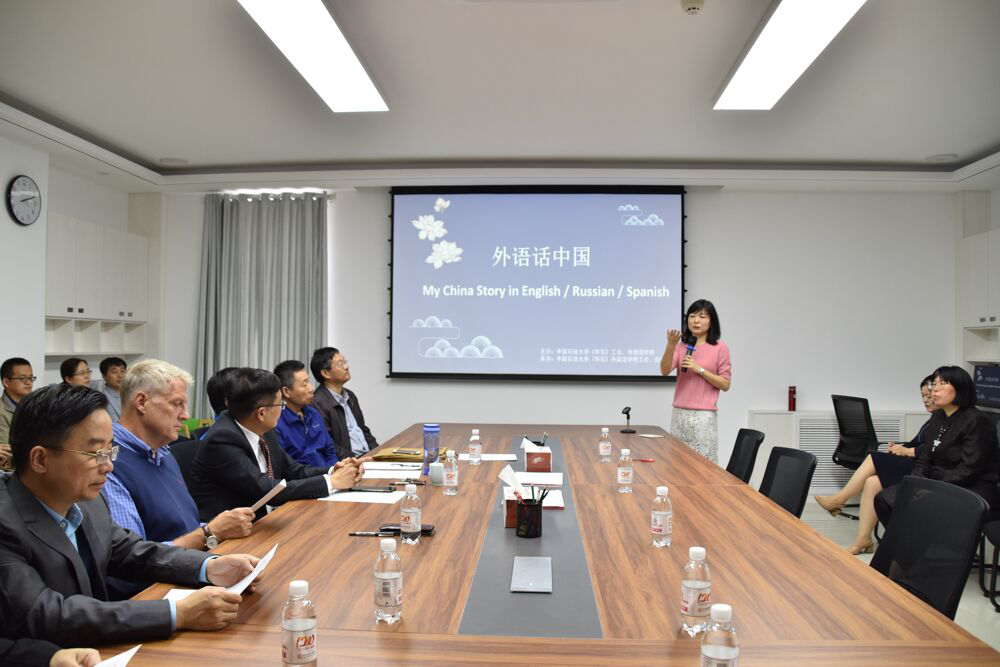 为了讲好中国故事,发出中国声音,弘扬中华优秀传统文化,同时提升外语教师的语言表达能力和课程思政教学能力,10月9日下午,中国石油大学工会、外国语学院在文理楼346联合举办了外语话中国教职工风采展示比赛活动。校工会张军主席、汤平如副主席和外国语学院毛浩然院长、张永宁书记出席活动现场,徐万治教授、外教Russ、副院长郭月琴教授担任比赛评委。