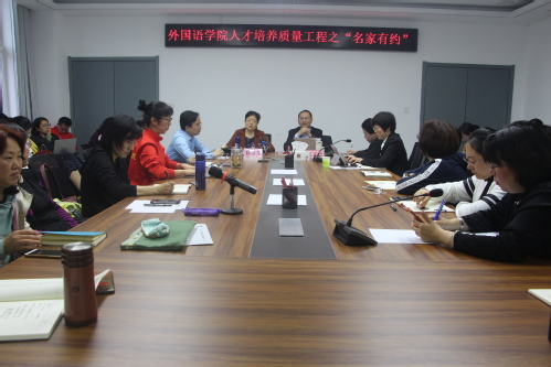 5月14日上午,外国语学院于文理楼346举办“名家有约”之专家座谈会。座谈会由外国语学院副院长韩淑芹主持,特邀华中科技大学徐锦芬教授与南开大学张文忠教授,为我院教师答疑解惑。外国语学院院长毛浩然、各系骨干教师代表出席座谈会。