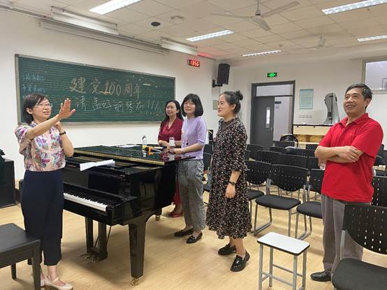 为迎接本次歌咏比赛,外国语学院邀请文法学院的孙颖老师、李汉老师和陈蓉老师,对全体参与合唱的教师进行了专业指导和钢琴伴奏。在长达两个月的准备与练习时间里,全体教师都能够在兼顾教学和科研的同时,牺牲休息时间,配合学院工会工作,积极参加合唱练习。特别是指挥郑琳老师,领唱徐万治老师、吴易曦老师、刘媛媛老师、马金芳老师,为合唱比赛勤加练习,付出了很多。为了本次庆祝活动的顺利开展,工会干部在张永宁书记的领导下,精心组织,默默奉献。经过大家共同的努力,我们圆满地完成了教职工歌咏比赛,唱出了外语学人的精神面貌,展示了学院的外语特色,凝聚了力量,为建党100周年献礼。