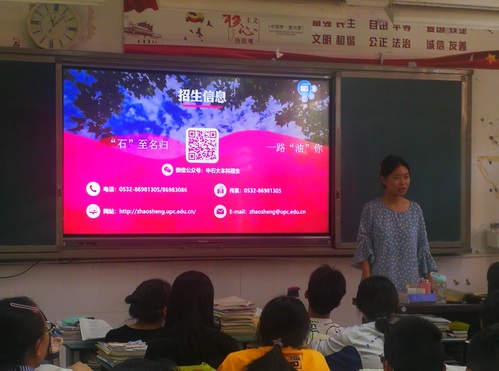 在结束了对往届毕业校友的访谈后,8月16日,唐紫琪携访谈以及宣传资料回到了四川省成都市都江堰市八一聚源高级中学。她表示:“聚高学风端正,纪律严明,与石大气质相符。”回到母校,唐紫琪做的第一件事是拜访曾经的任课老师,并征得了校方的同意后宣讲。在任课老师的带领下,唐紫琪来到了聚源高中2022届7班,在做自我介绍后就中国石油大学(华东)的地理位置、气候环境、历史沿革、科研实力、基础设施等方面进行了讲解,介绍了我校杰出校友,并对四川省历年招生信息进行了全方面剖析,分享了之前校友寻访中获得的就业信息。宣讲过程中,同学们听得聚精会神。“听了唐紫琪学姐的讲解并结合自己的情况,我觉得把石大作为我的升学目标很合适。”一名高二同学表示。