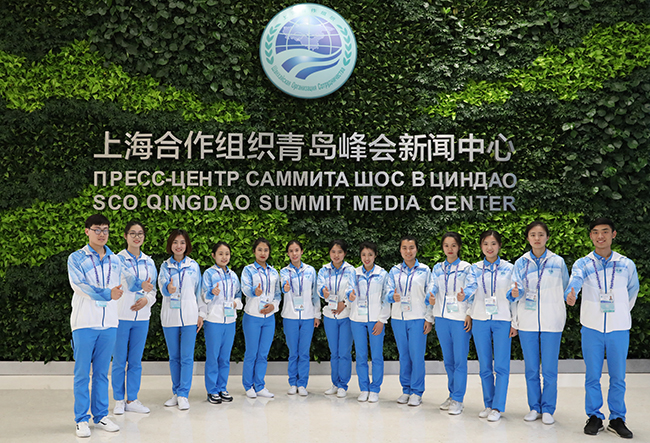 上海合作组织青岛峰会新闻中心是本次峰会信息发布和记者工作的主要场地,35名石大“小浪花”分布在取证中心、咨询台、媒体公共工作区、新闻发布厅、会议采访等多个核心工作区,为各国媒体记者提供全方位、高标准、精细化的服务。我校志愿者自3月份开始,先后接受了上合组织成员国历史培训、外交外事礼仪培训、国家安全培训,并于5月份进行集中军训,从文化历史、安全意识、组织纪律、仪容仪表等多个方面,全面提升了志愿者参与志愿服务的能力和水平。一场场模拟情景演练、一遍遍检查场馆细节、一次次标准微笑练习、一份份工作手册记忆……石大“小浪花”用最高标准要求自己,用最美姿态服务上合。