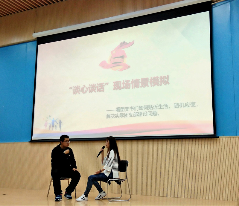 本次团支书技能大赛共分为三个阶段,初赛“笔战群雄”与复赛“舌战群英”分别以考察基础团务知识的笔试与现场答题形式对参赛选手进行考核,最终从这两个阶段中共选拨10名选手进入决赛。在全场肃立,奏唱中国共产主义青年团的团歌《光荣啊,中国共青团》后,决赛依次进行“团支部风采视频展示”和“现场模拟情景”环节,各参赛选手阐述自己对团支部建设工作的认识,并根据现场抽到的题目对团支部可能存在的问题进行分析与讲解。期间,各评委在选手完成后进行简要点评并打分,台下,观众们也都聚精会神,并积极参与到第二环节的情景表演中。王宁点评本场比赛时说道:“可以看出大家为这次比赛都准备了很多,不论是展示视频还是模拟情景题都表现的不错,但是,选手局限于比赛,没有考虑到现实情况的处理,希望参赛选手和现场观众在面对这些情况时能够作更好的处理。”最终,机械设计制造及其自动化专业1802团支部团支书岳树萱荣获本次比赛第一名,由评委进行现场颁发奖杯和证书。