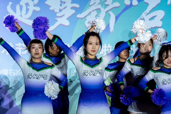 绚丽的聚光灯下,啦啦宝贝们展现石大学子的青春活力。激扬的舞姿、动感的节奏,伴随着欢快的音乐,文法学院的满姝含踏歌而来,一出场便以啦啦操独有的魅力感染着在场的观众,将现场比赛的气氛推向了高潮。不同于其他啦啦宝贝的激情动感,石油工程学院的张金卓步伐翩跹,长袖飘飘,一姿一态尽显飘逸之美,轻盈灵动的舞姿别有一番风情。