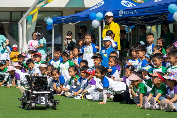 小朋友们观看机器人表演赵秋实摄